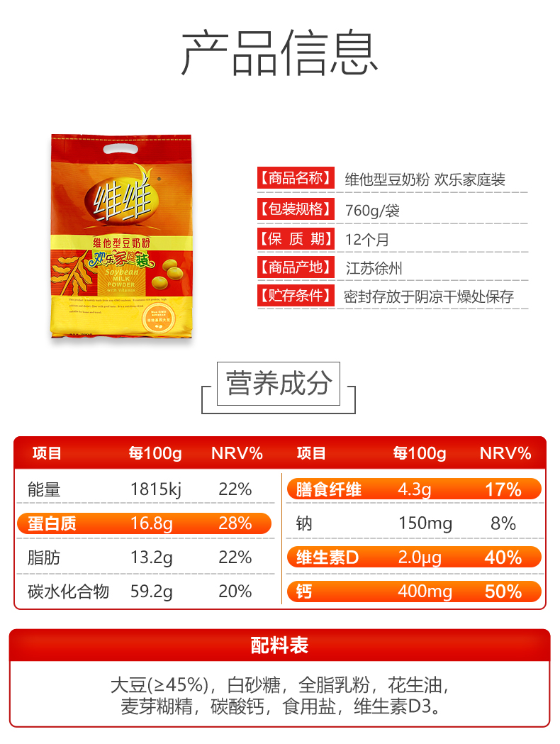 Vivi Bean Milk Powder 760g grams * 3 Bags Full Box Preferential Instant Soy Milk Nutritious Breakfast Flush drinks