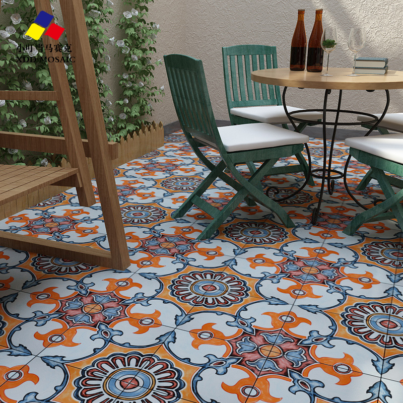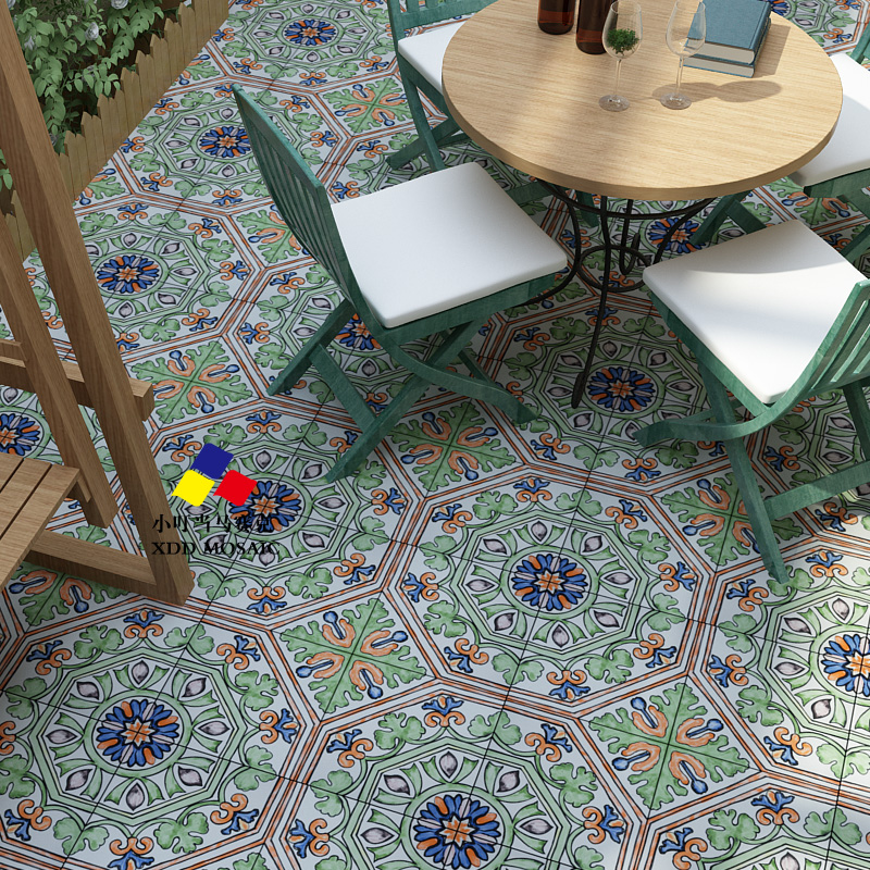 Retro hand painted brick imitation ancient flower sheet anti-slip ground floor dining room Balcony Bedroom courtyard Living room Background Wall Brick 300
