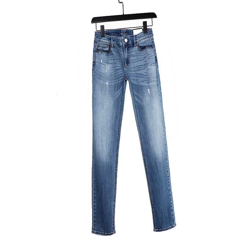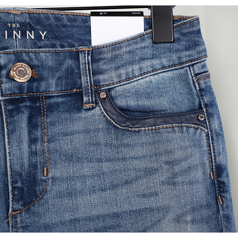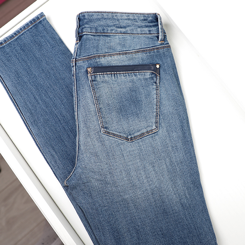 PU stitching jeans women's trousers blue cigarette pants slim straight pants