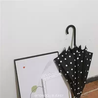 South Korea ins Wind chic niche wave point solid color long handle umbrella anti-wind automatic umbrella double student umbrella female