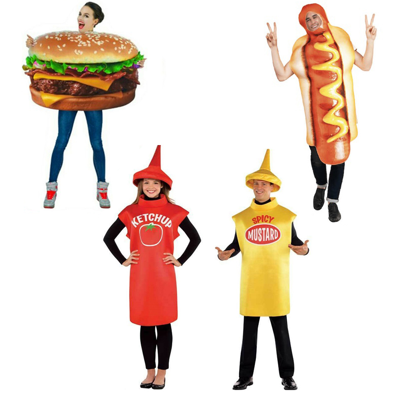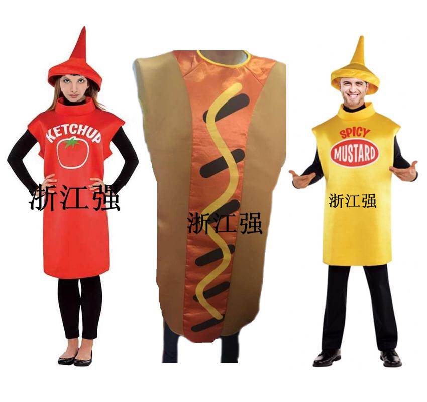 Halloween masquerade food theme clothing pizza ketchup mustard dog hamburger dinosaur COS costumes