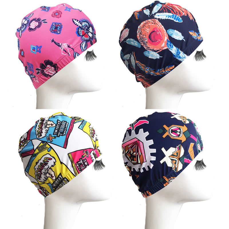 Swimming cap Multi-color nylon plus stretch men women long hair ear protection cloth swimming cap