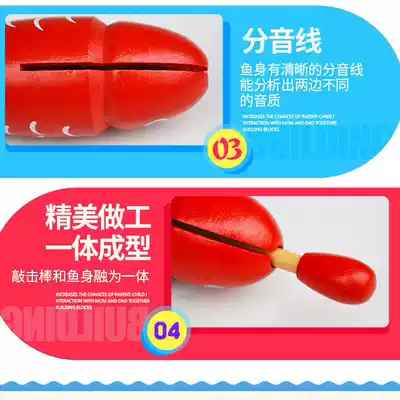 Red wooden fish toy percussion instrument Wooden fish-shaped clapper children's kindergarten early education Orff musical instrument teaching aids