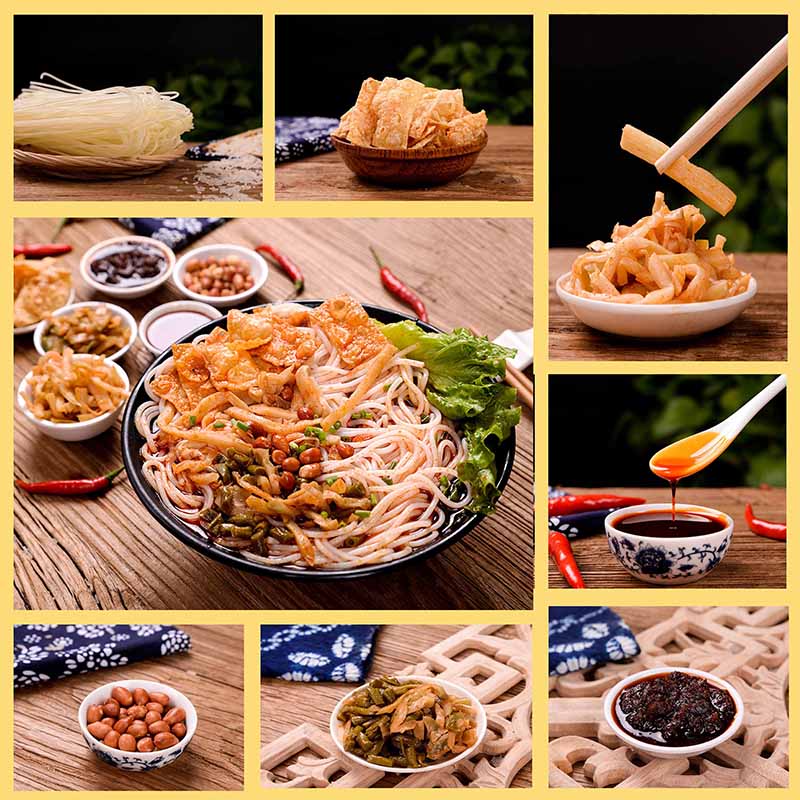 Dried rice noodle sauce package bean curd package Peanut package Sour bamboo shoots package Bean curd mustard package Chili oil package (see packaging)