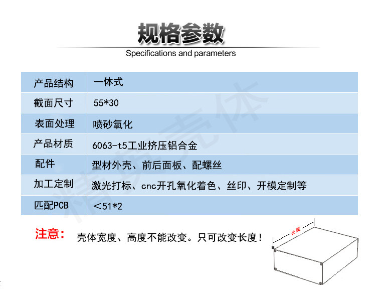Aluminum alloy shell Instrument shell Aluminum extrusion material Case Mobile power housing Aluminum case 55*30