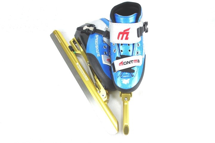 Speed skating with ice-knife shoes in the water