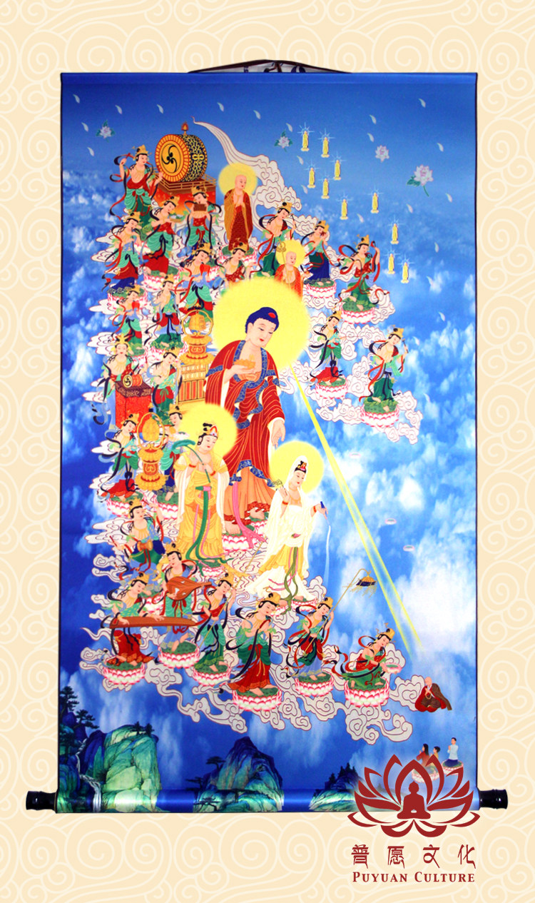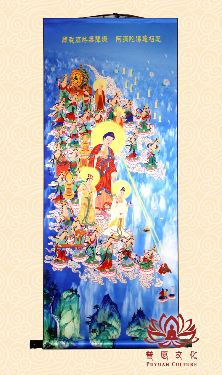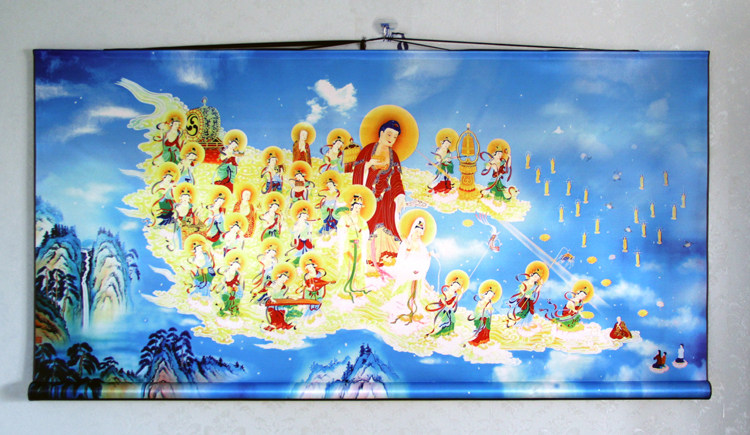 (Puwish culture) Western to take up the drawing of Buddhist statues silk scrolls to hang paintings of various sizes