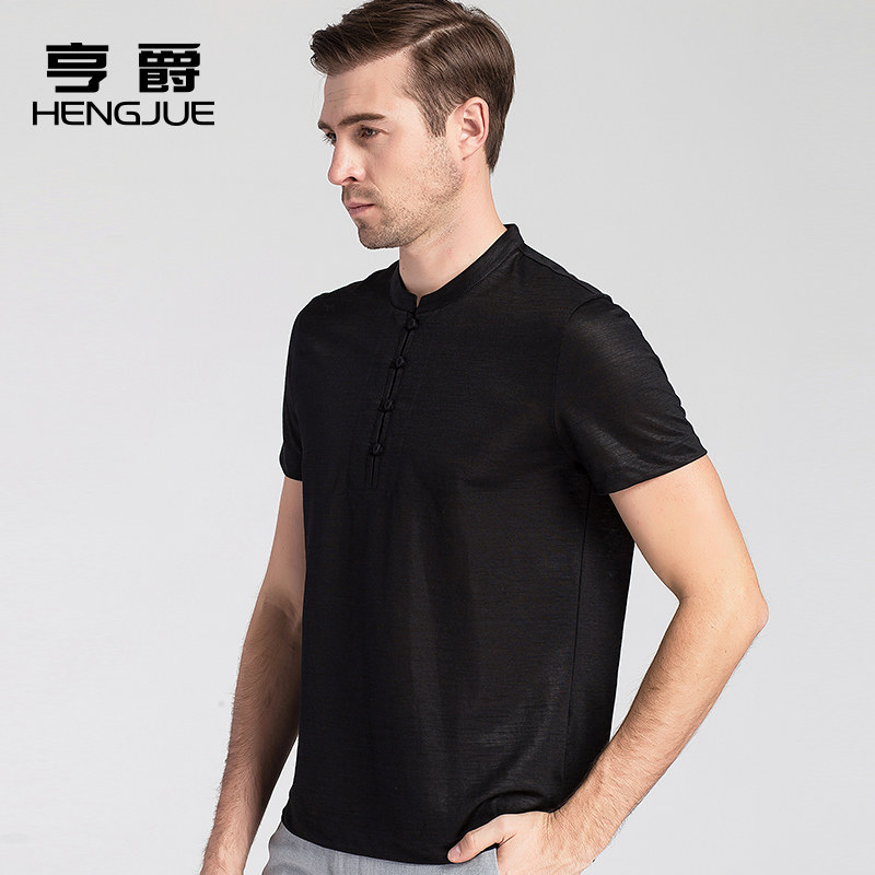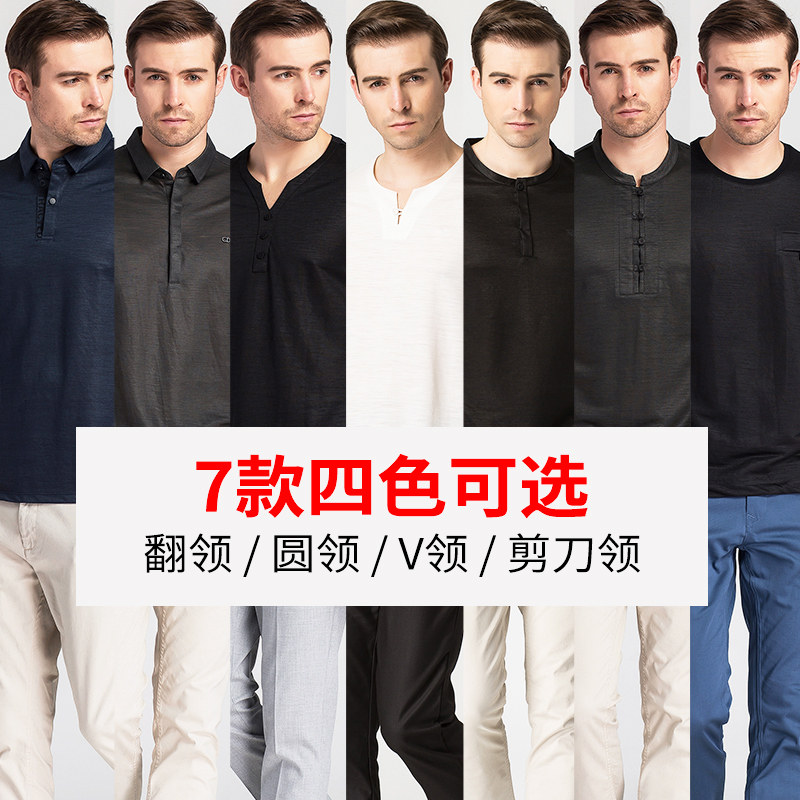 Summer linen short-sleeved T-shirt men's lapel middle-aged dad T-shirt Summer ice silk Polo shirt Men's long-sleeved linen shirt