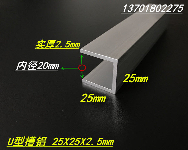 25X25X2 5 U groove aluminium aluminium alloy tank aluminium inner width 20mm aluminium alloy slot display slot aluminium