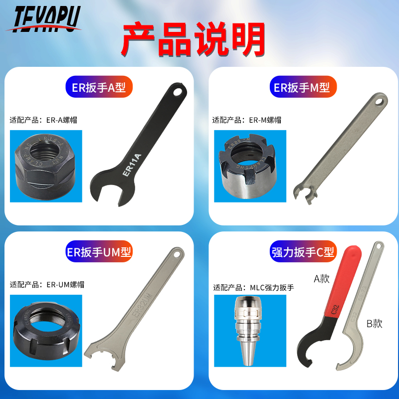 White Gray Silver Black Type A-ER8M Wrench Type A-ER11M Wrench Type A-ER16M Wrench Type A-ER20M Wrench Type A-ER25UM Wrench Type A