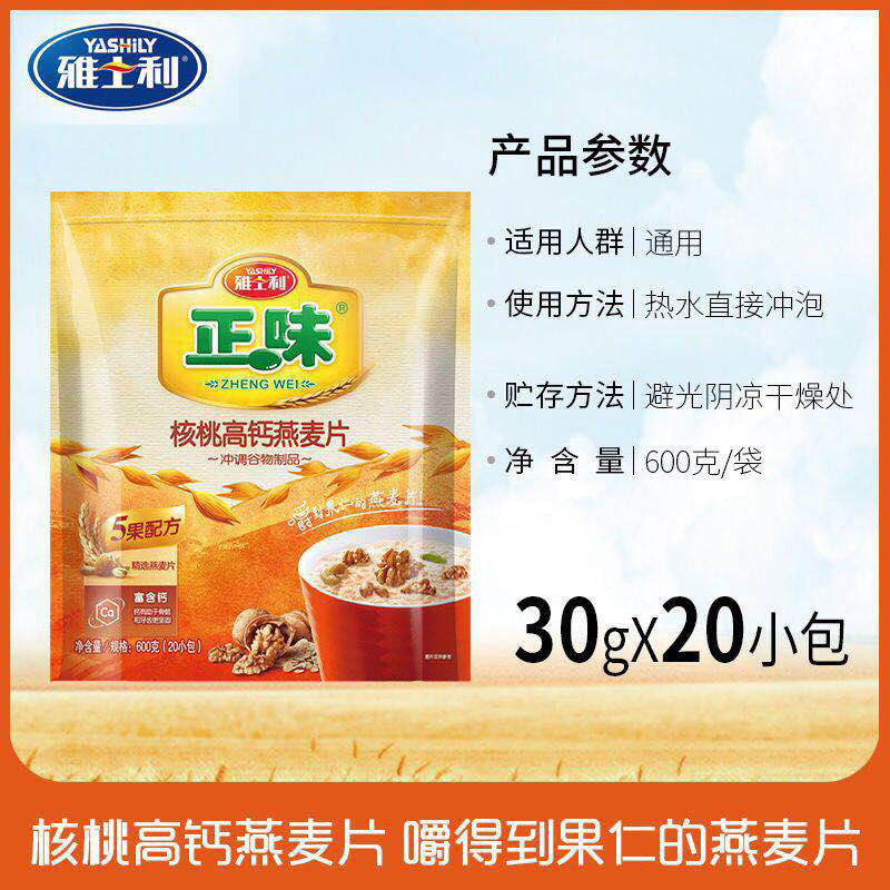 Yashili Zhengwei walnut high calcium oatmeal 600gX2 bags breakfast brewed beverage nutrition ready-to-eat mixed oatmeal