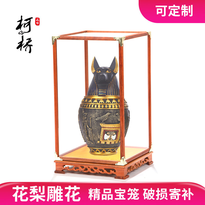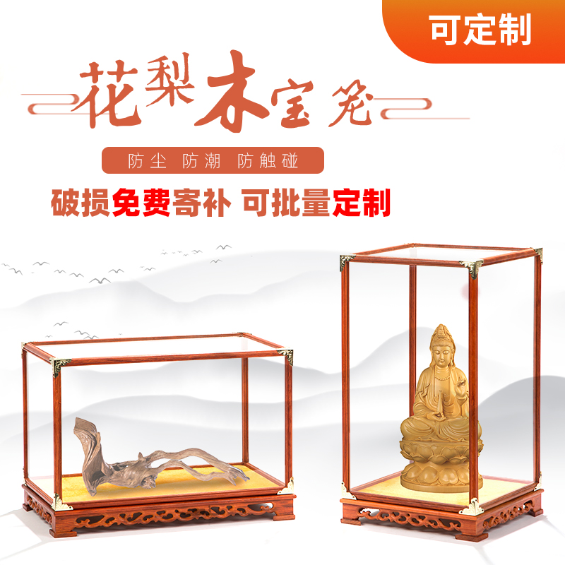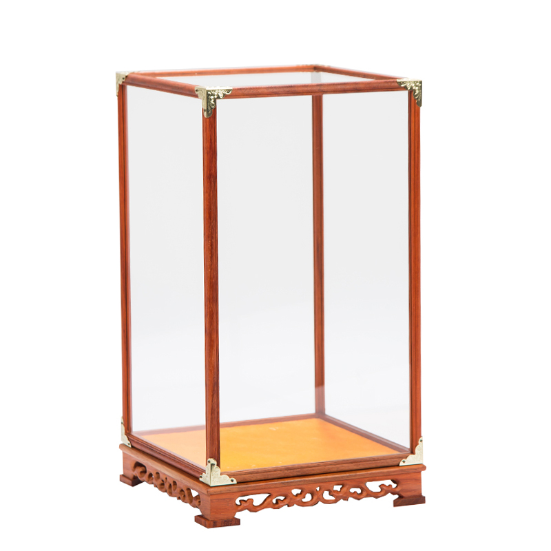 Red Wood Glass Shade Transparent Customizable Buddha Antique Vase Hem handicraft display Dust cover Flower Pear Treasure Cage