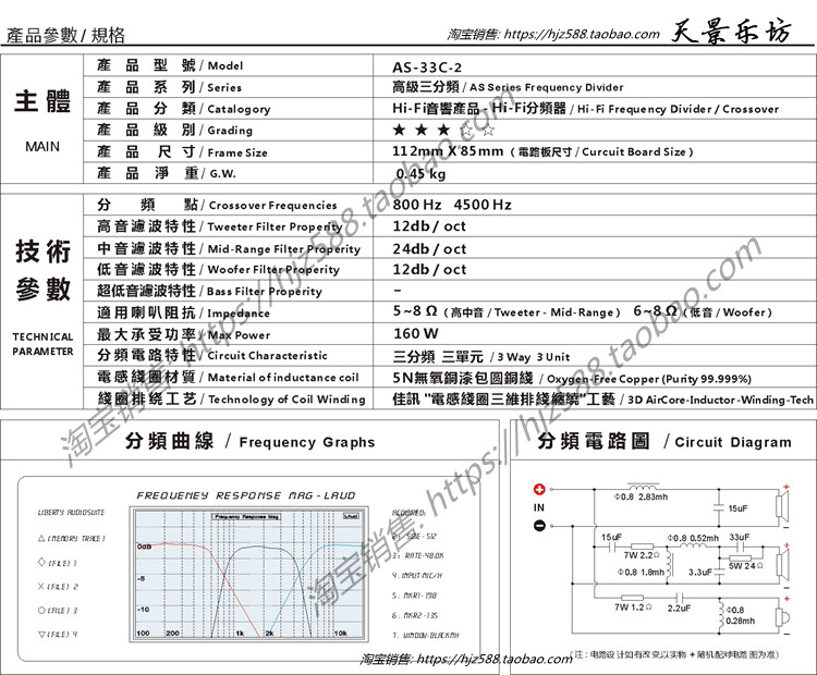 Jiaxun AS-33C Senior high school Low 3-Frequency Divider Fever HIFI Audio Speaker Divider