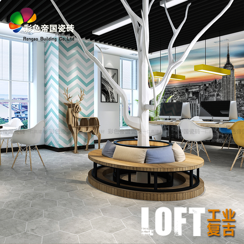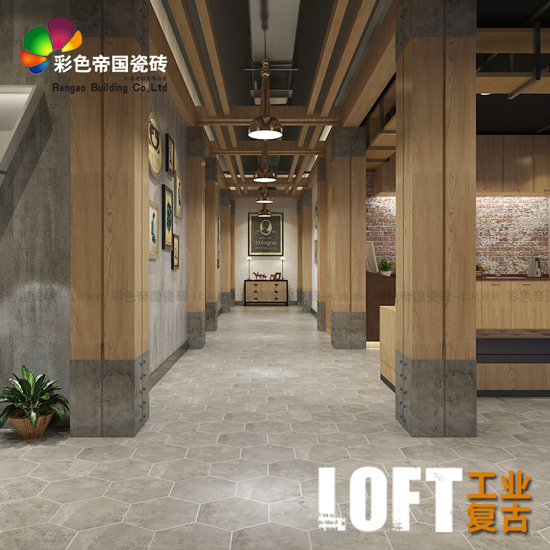 Water Clay Grey Hexagon Brick Flower Brick Retro Hexagon Industrial Ash Bar Net Cafe Floor Tiles Kitchen tile Tile Wall Brick