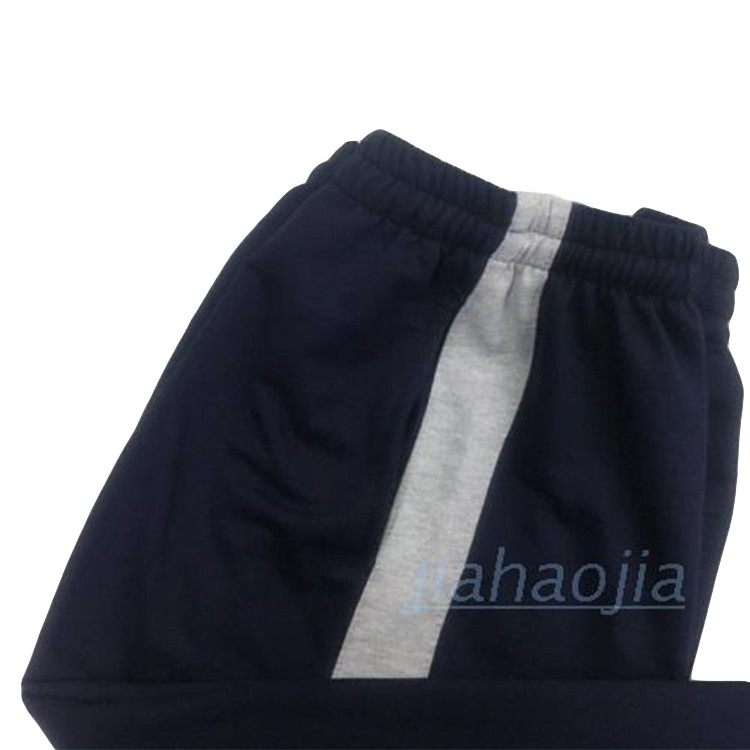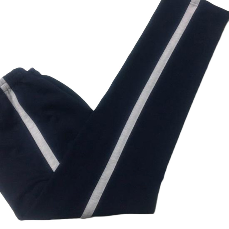 Spring, summer and autumn cotton trousers deep navy blue classic color matching inlaid gray terry wide strip sports pants casual school pants