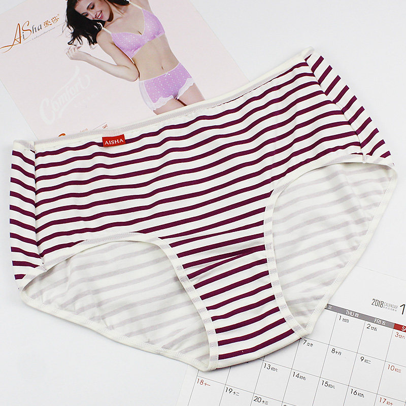 Aisha panties women's mid-waist pure cotton stretch lycra cotton sexy striped printed hips girls small boxers