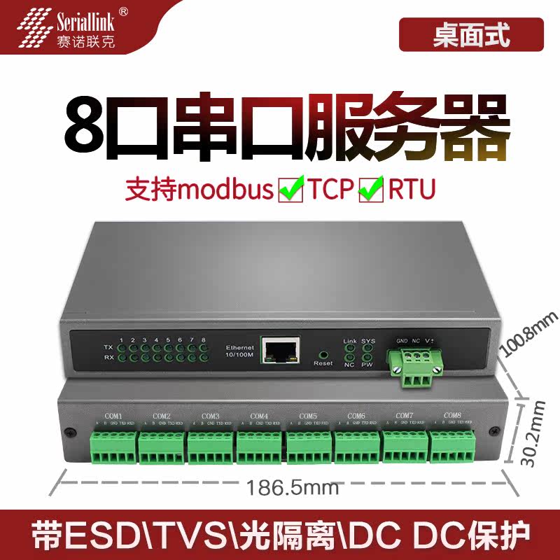 8-port serial server 12V version (6-28V) 8-port server 12V-Modbus TCP version