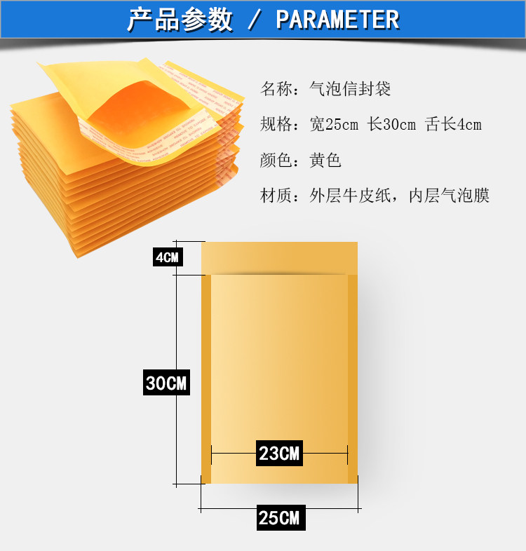25x30cm thickened yellow kraft paper bubble envelope express packaging bubble bag printing logo custom wholesale