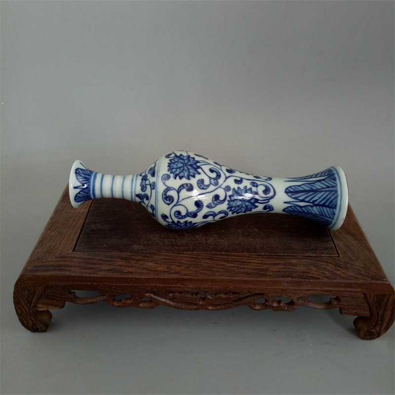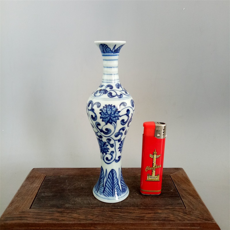Late Qing handmade blue and white twirling pattern small vase antique antique antique porcelain collection old Bogu shelf decoration