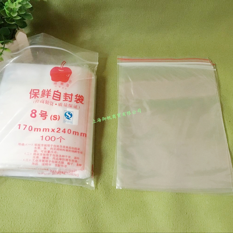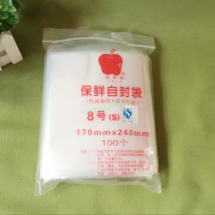 Apple Fruit Card Self-proclaimed Bag Closure Bag Transparent Food Packaging Bag Sealed Bag 8 Number 170 * 240mm