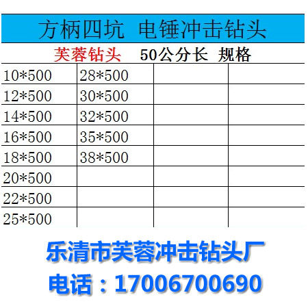Square handle four pit electric hammer drill bit impact drill bit 50 cm long hibiscus drill bit 10-38*500mm word