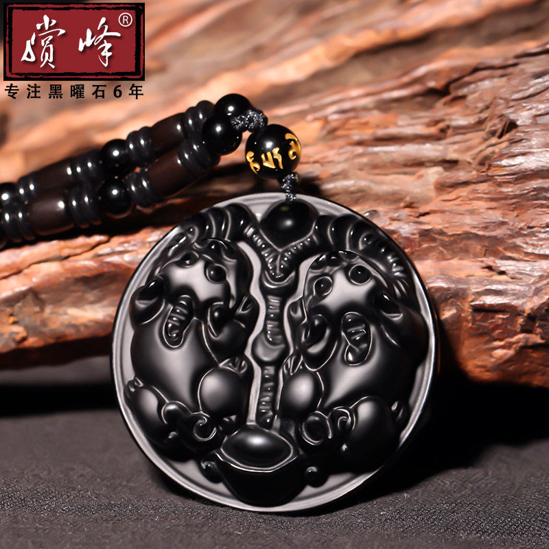 Natural Black Yao Stone Double leopard Pendant Pendant for men and women Men's Property Transfer Bully leather Leather Peel Leather Pendant necklace pendant Item pendant item
