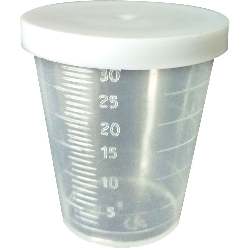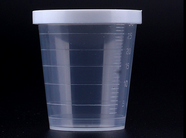 Promotion plastic with cap cup accurate 30ml household liquid cup lab sampling cup