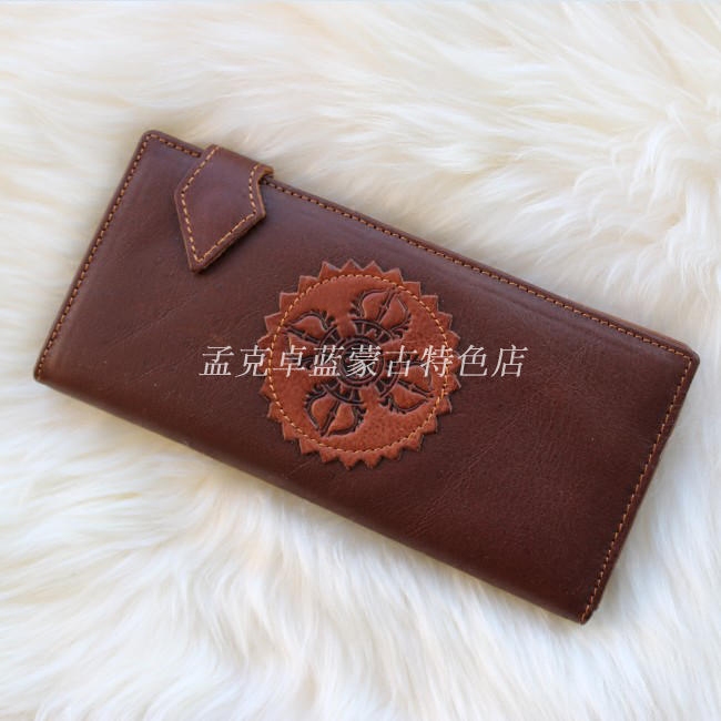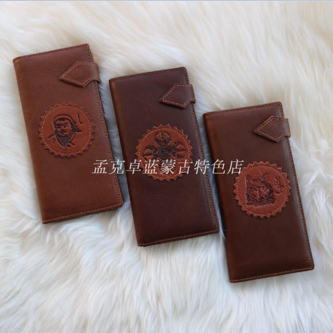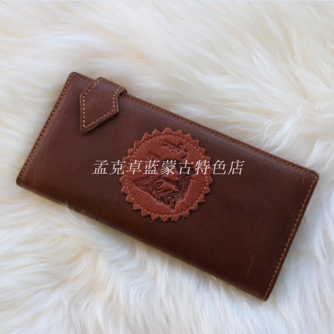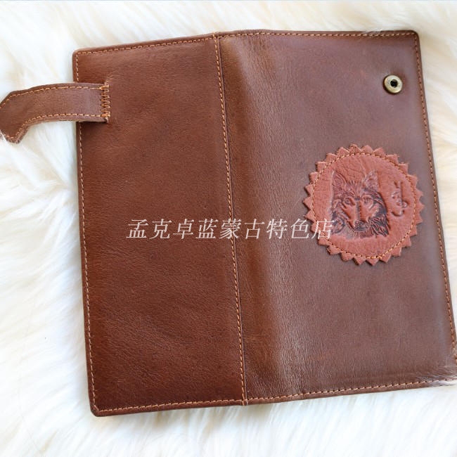 Retro Genuine Leather Wallet into Giath Sweat Men's Long version Money clip Wolf Mongolian Leather Sculpted Head Layer Cow Leather Hide Personality Leather Wallet