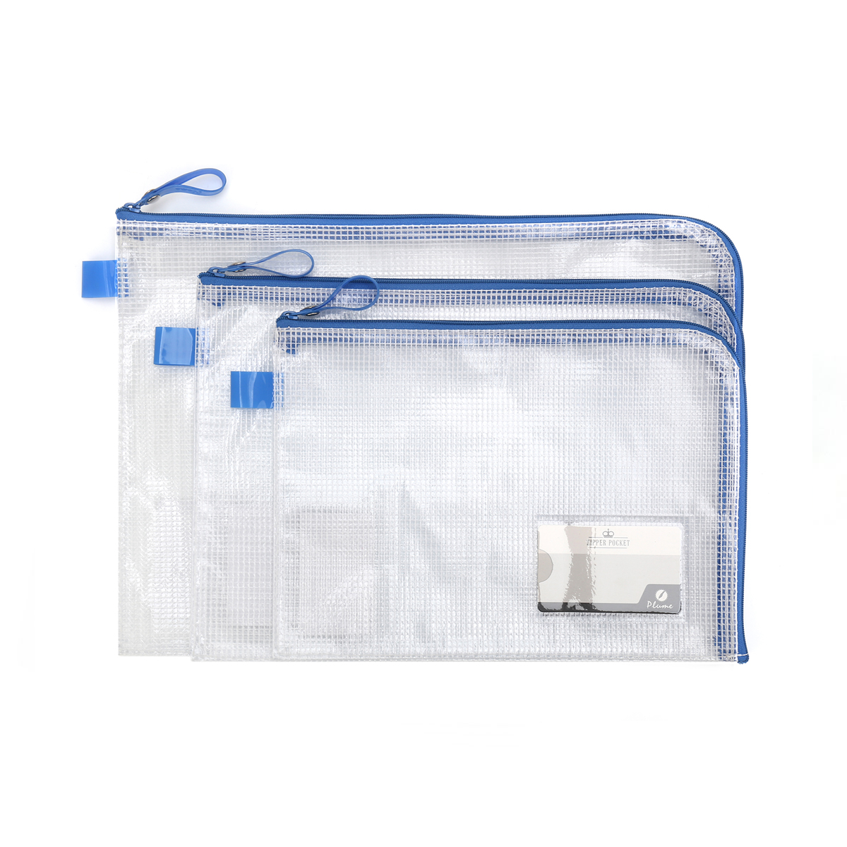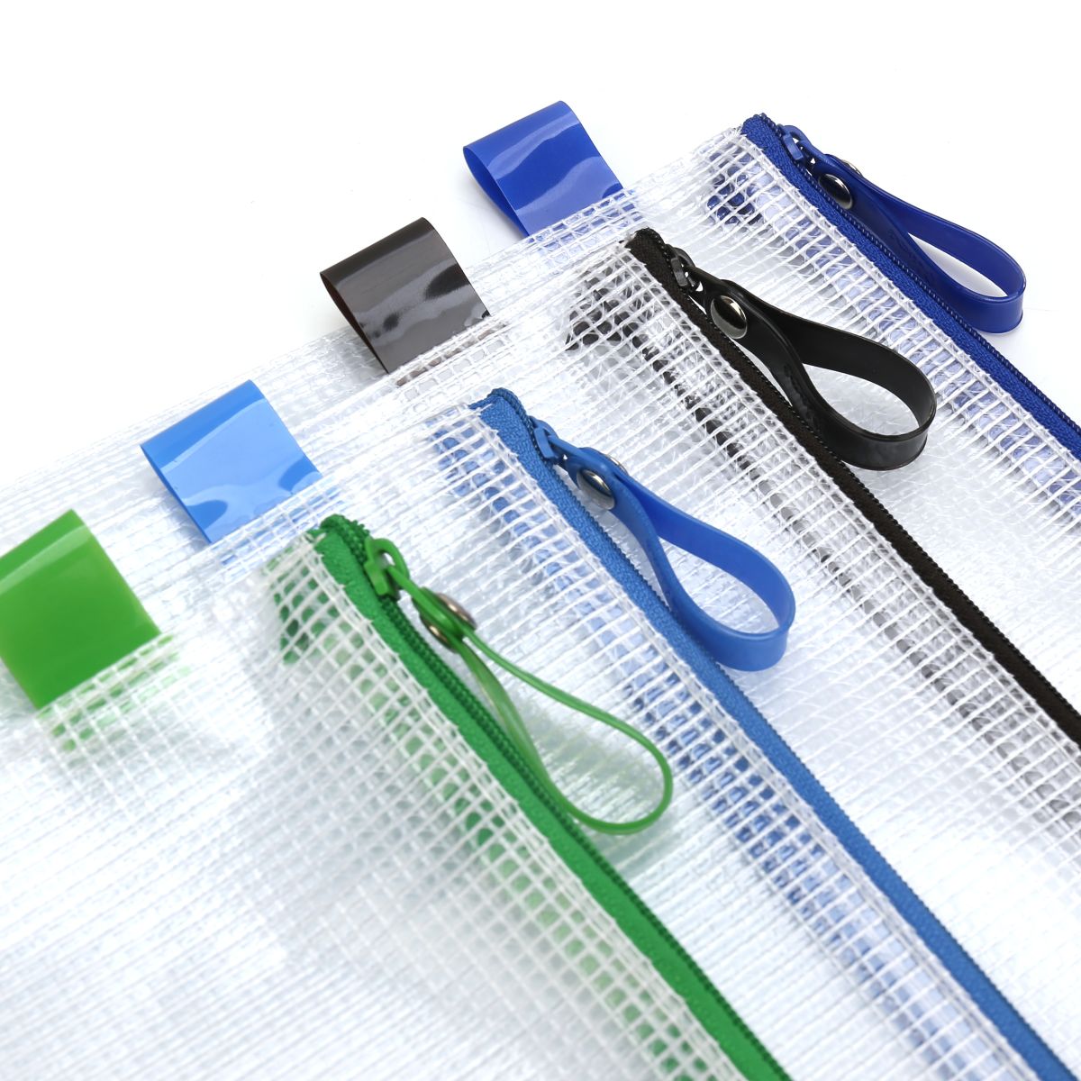 Double switch mouth mesh data bag financial bill bag A4 B5 A5 transparent mesh bag waterproof stationery office supplies
