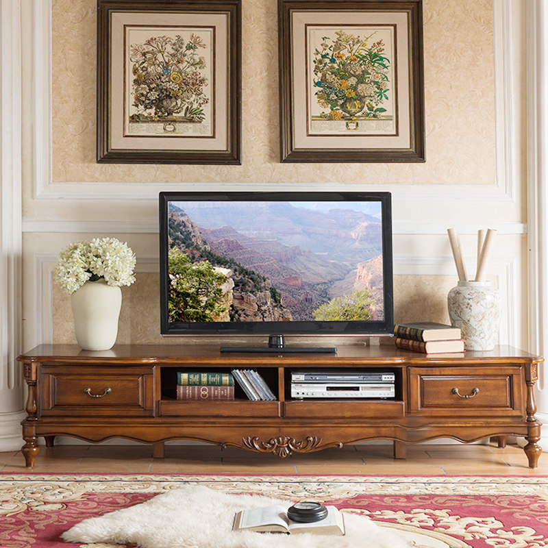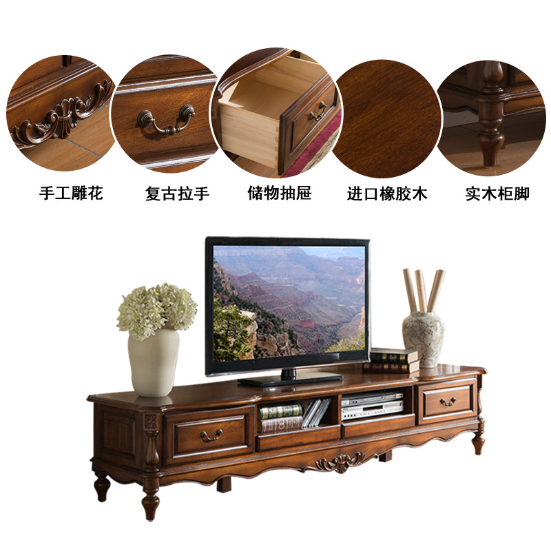 Meng Han American solid wood TV cabinet Living room TV cabinet 2 4 meters American solid wood TV cabinet American 2 meters ground cabinet
