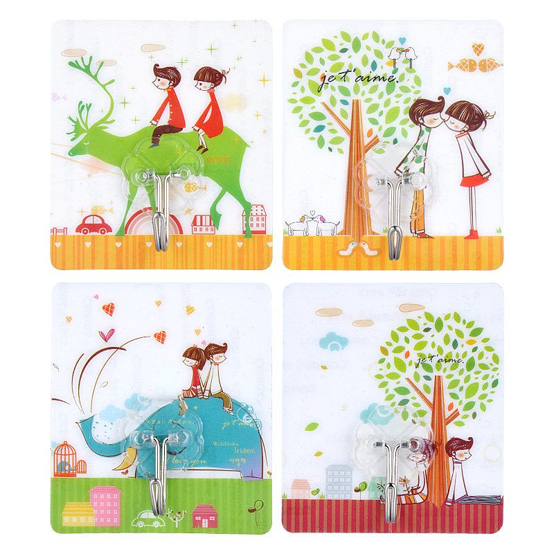 Transparent random pack of 20 patterned hooks thick stainless steel hook blue and white porcelain 16 packs (thick) 10 white walls transparent 10 patterns random white wall 20 transparent hooks (6*6CM)