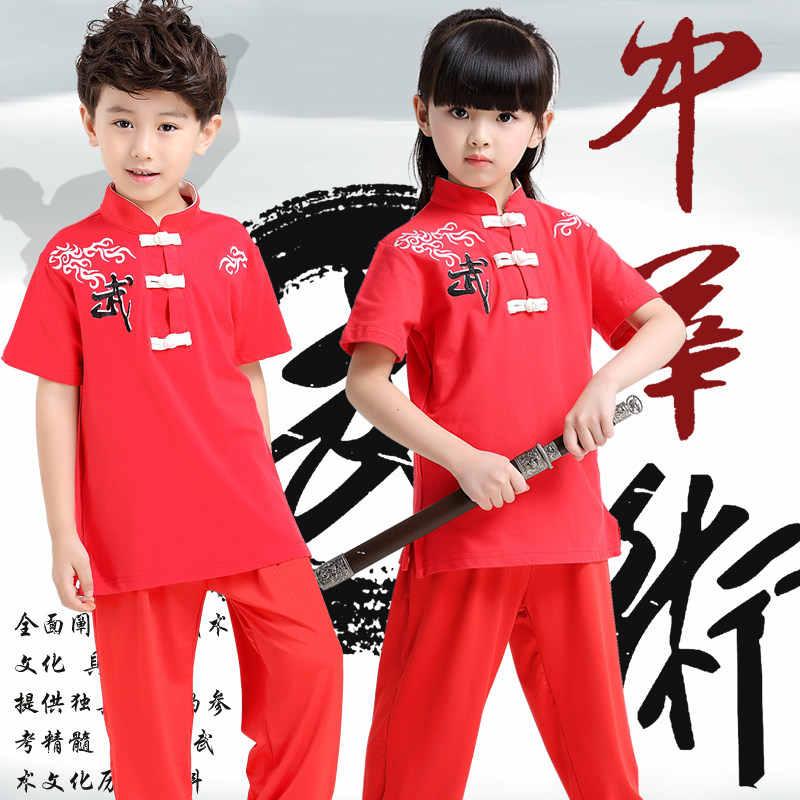 Children's martial arts clothing long and short sleeve boys Tai Chi training clothing performance training clothing children's national Kung Fu training clothing