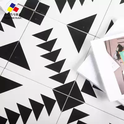 Nordic black and white tiles Powder room non-slip floor tiles tiles Living room background wall Mediterranean wall tiles 200 tiles