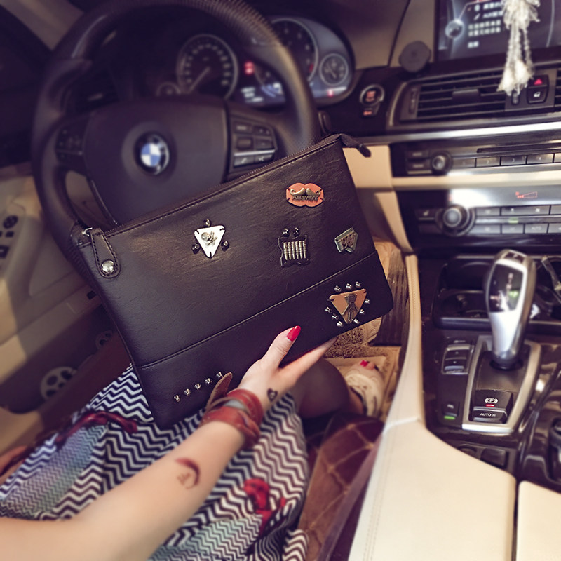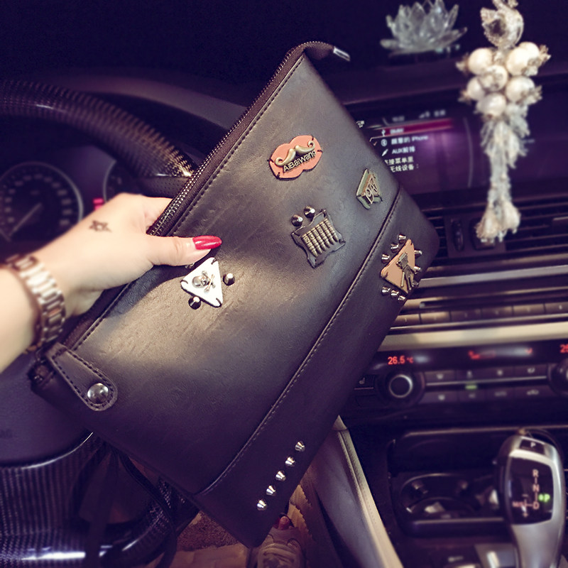 Korean version of the new men's hand grip Fashion Leather rivets Cortex Hands bag Leisure Street ipad File Package