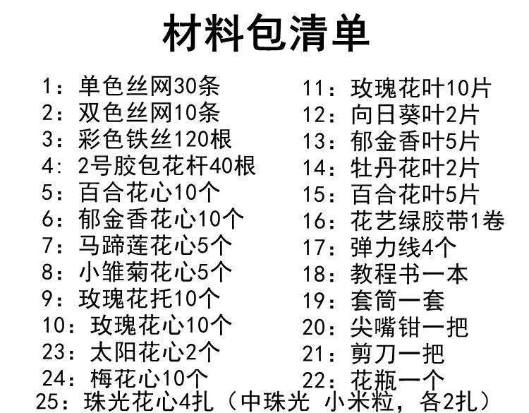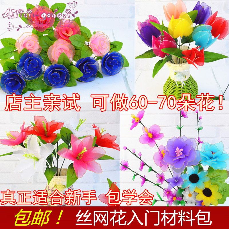 Silk mesh flower handmade material package package diy handmade stocking flower set floral rose flower variety wire entry