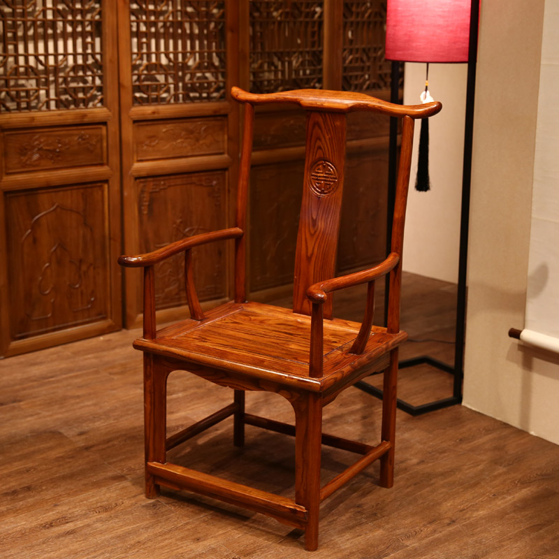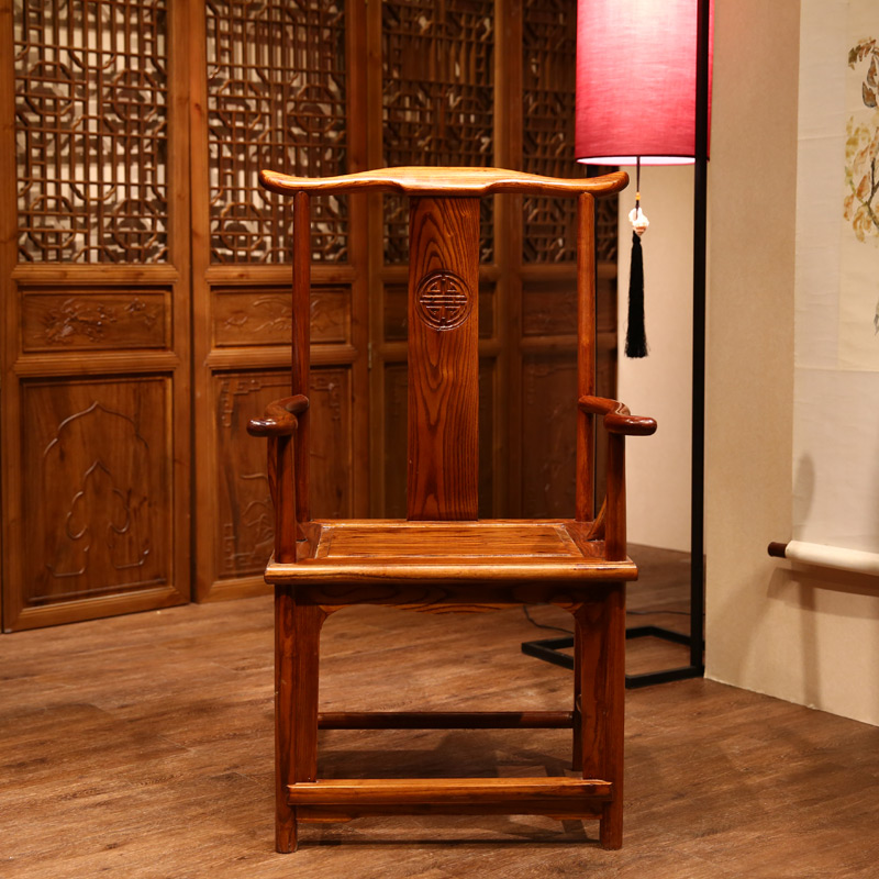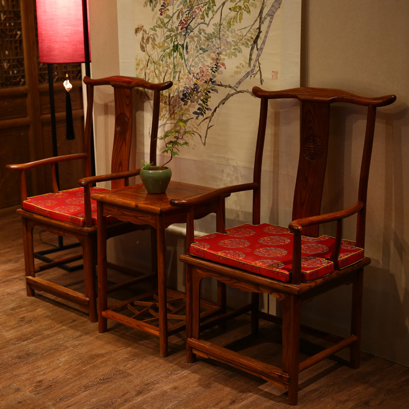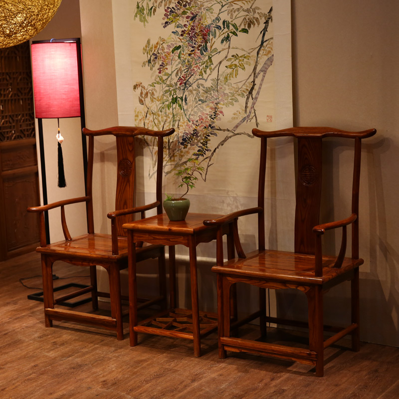 Pleasant family Chinese solid wood elm wood official hat chair three sets living room furniture chair adult stool tea table leaning back chair