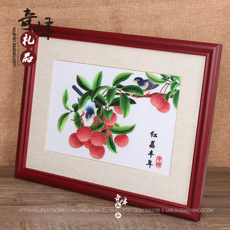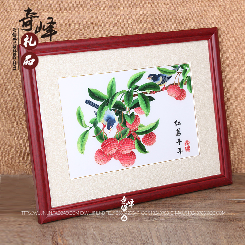Pure hand embroidery Cantonese embroidery Cantonese embroidery DIY lychee red lychee Fengnian Lingnan Guangzhou special gifts for foreign customers