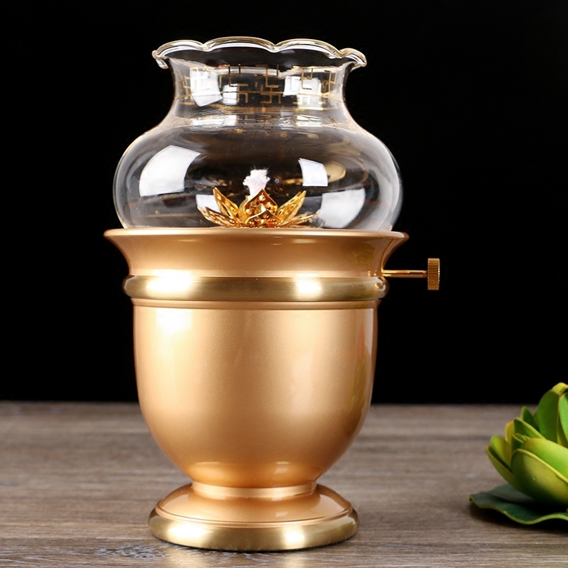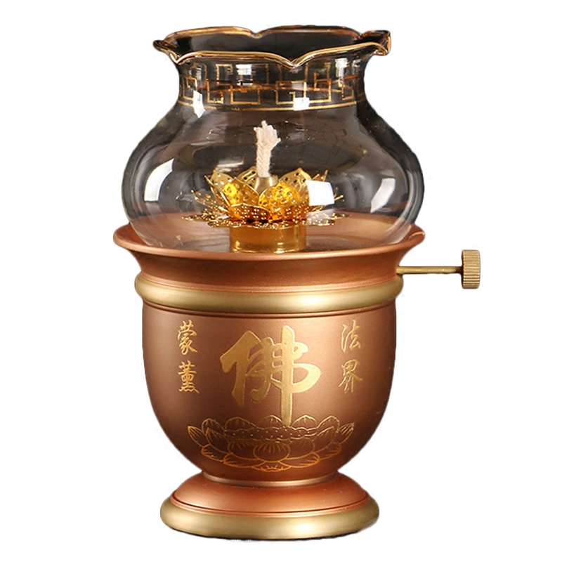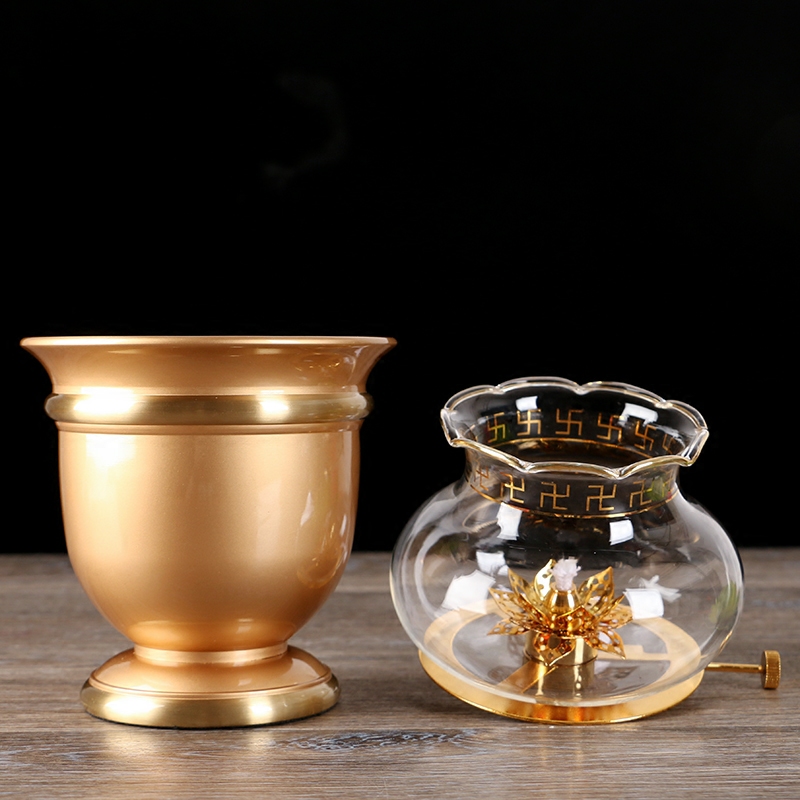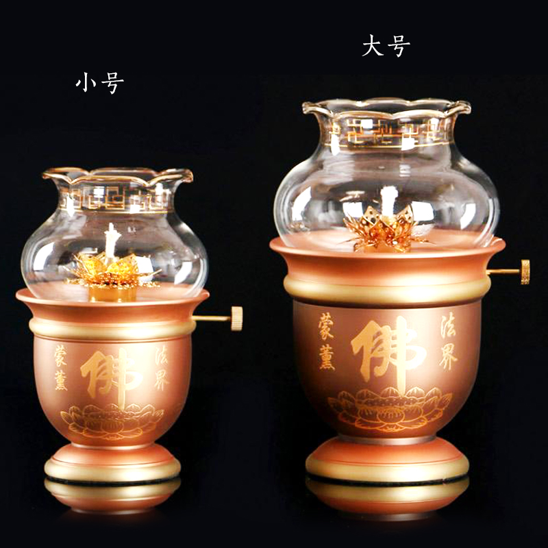 Small number Buddha word oil lamp big number Buddha character oil lamp small size pink gold vegan surface oil lamp large size powder gold vegan surface oil lamp