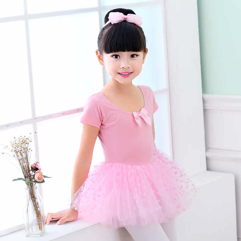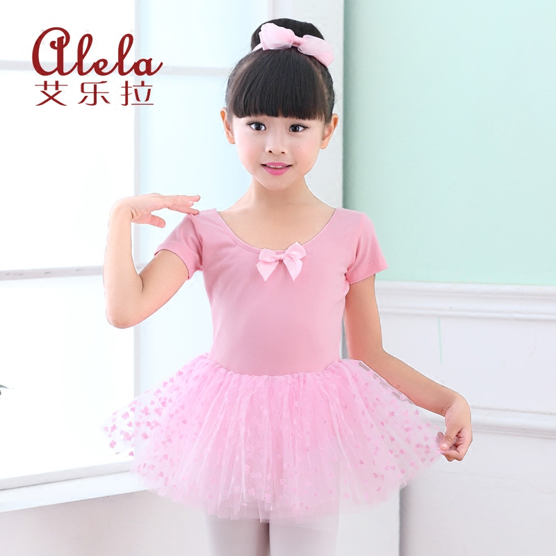 Children Dance Costumes Girls Ballet Dresses Summer Short Sleeves Dancing Practice Dresses Fluffy Dress Chinese Dance Dress