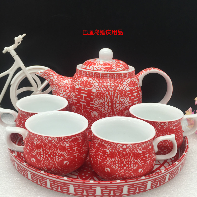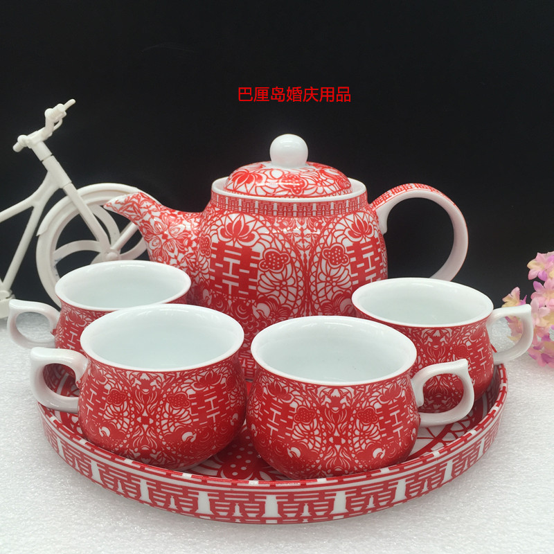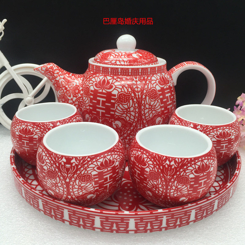Wedding traditional festive supplies tea toast tea tea set bowl full set Guangliyuan produced ceramic tea set flag Pisces tea set