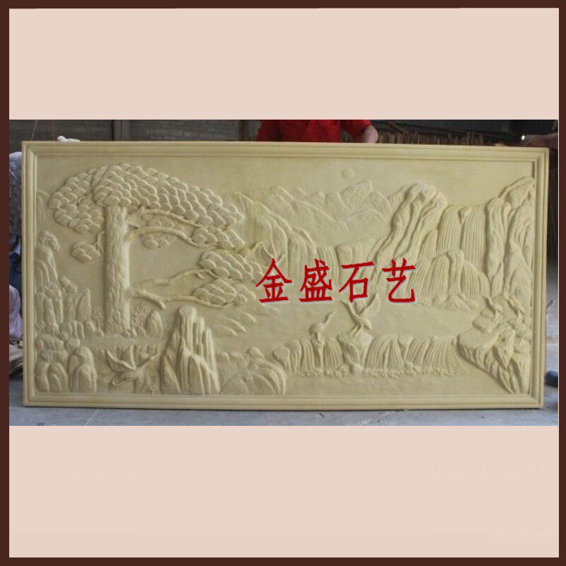 Sandstone Chinese relief glass fiber welcomes pine sandstone background wall painting hotel home decoration materials
