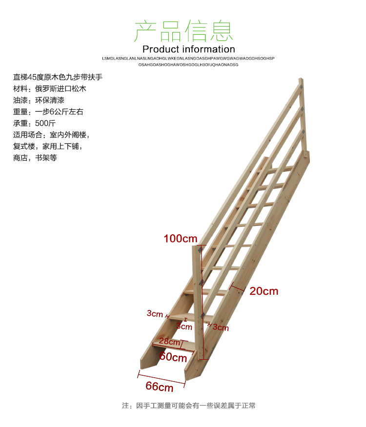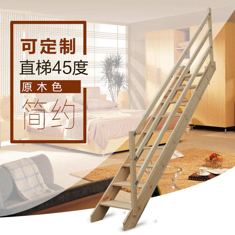 Solid wooden ladder custom single - word straight 45 degrees with armrest household wooden indoor villa duplex attic stairs