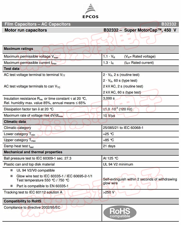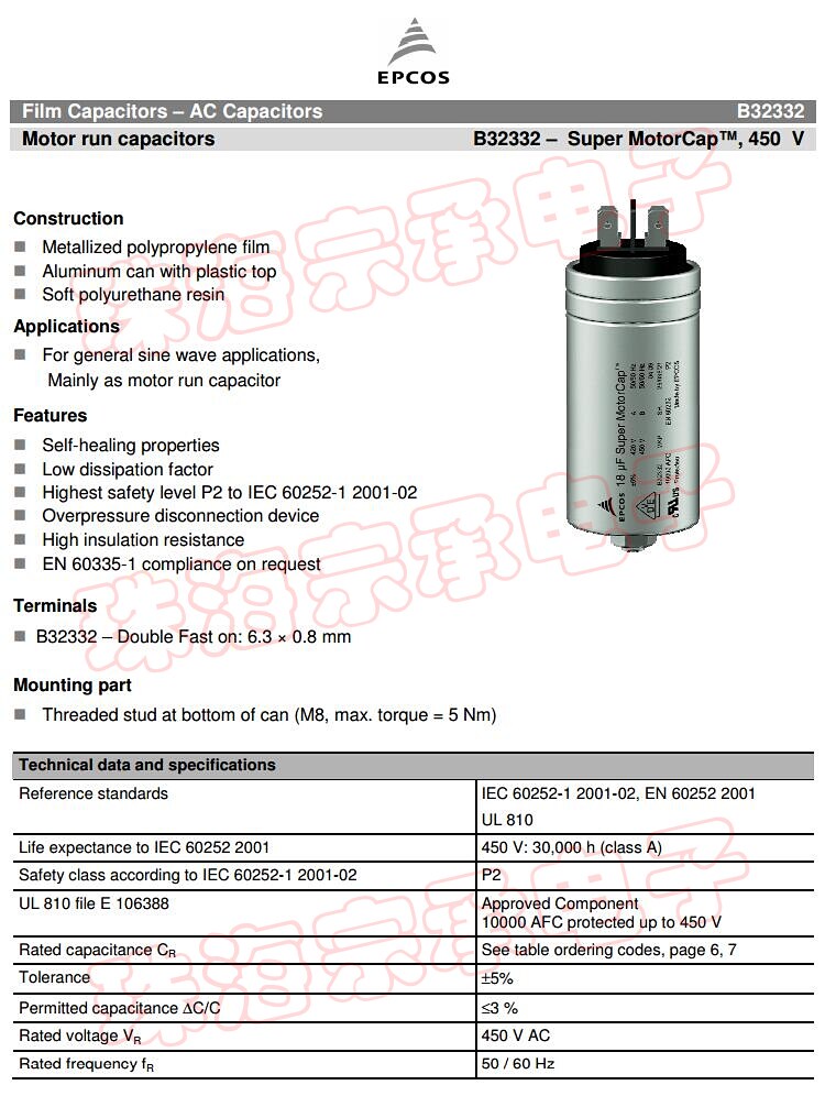 Imported India 30uF 450VAC EPCOS motor running start capacitor B32332 EPCOS