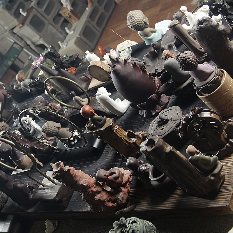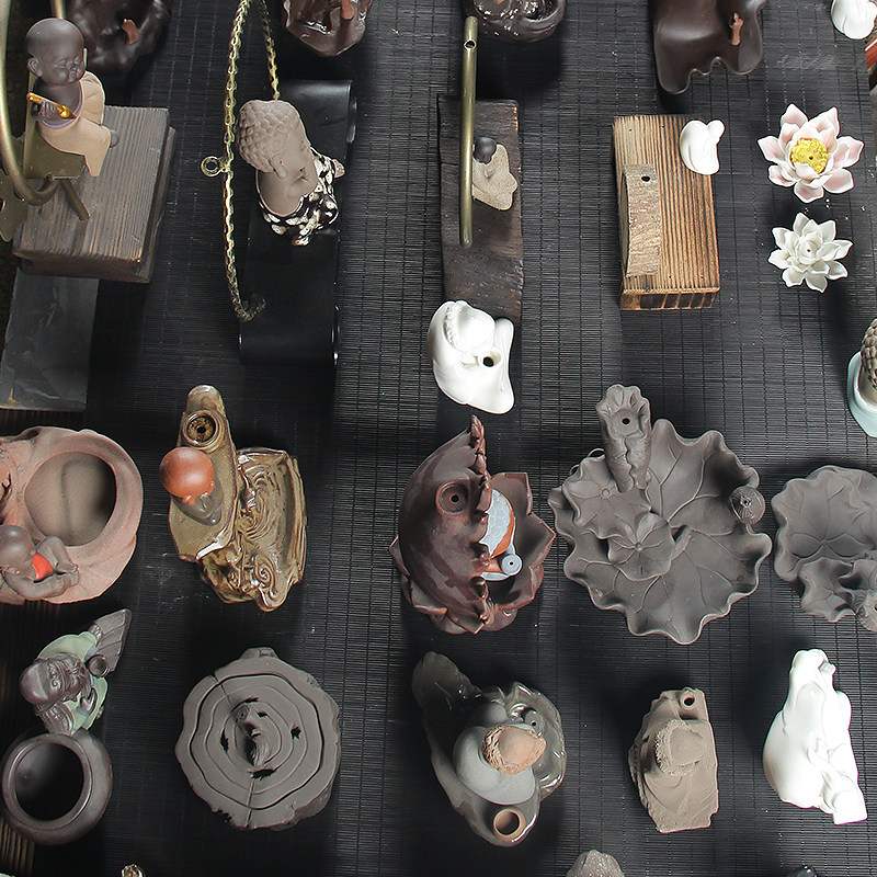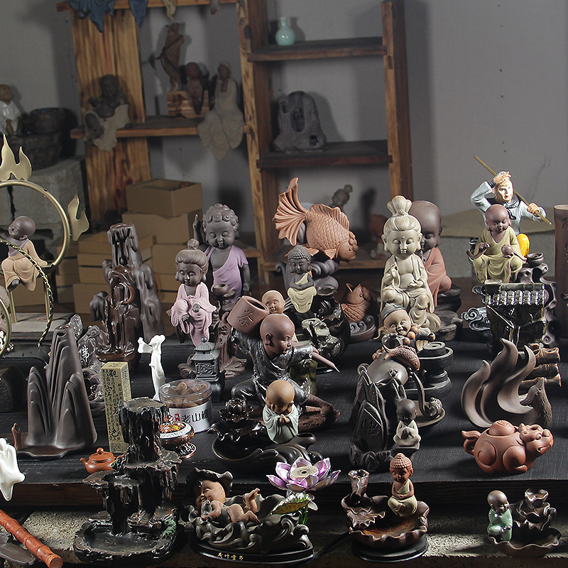 Follow-edge ceramic ornamental back-back incense tower Chancery sandalwood Incense Burner Imitation Ancient Purple Sand Domestic turn-back incense burner Creative Pendulum