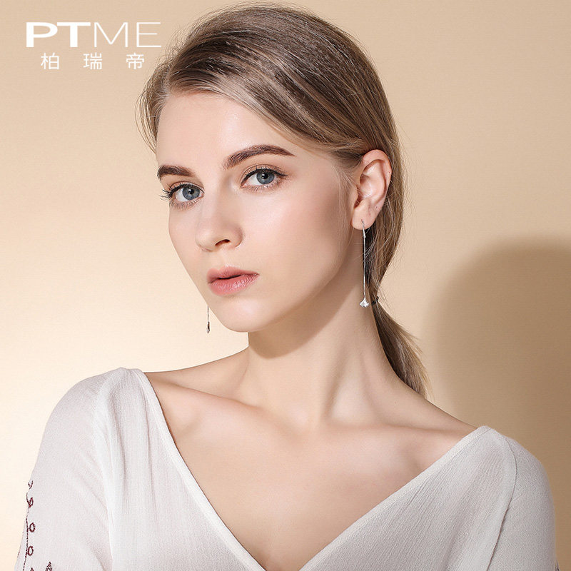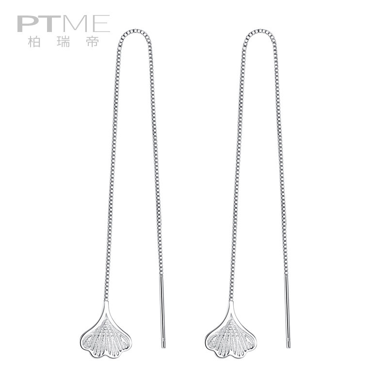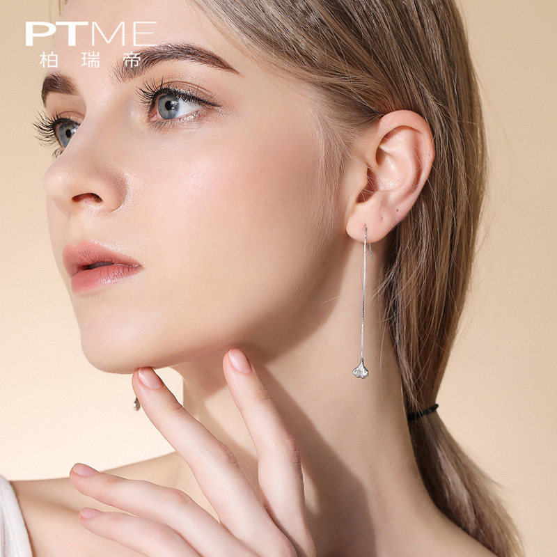 Pure Silver China Wind Ear Necklace With Long Version Earrings Female Temperament Brief Little Clear New Gingko Leaves with a thin ear pendant