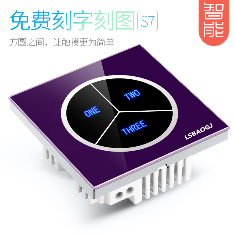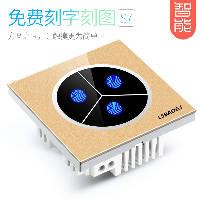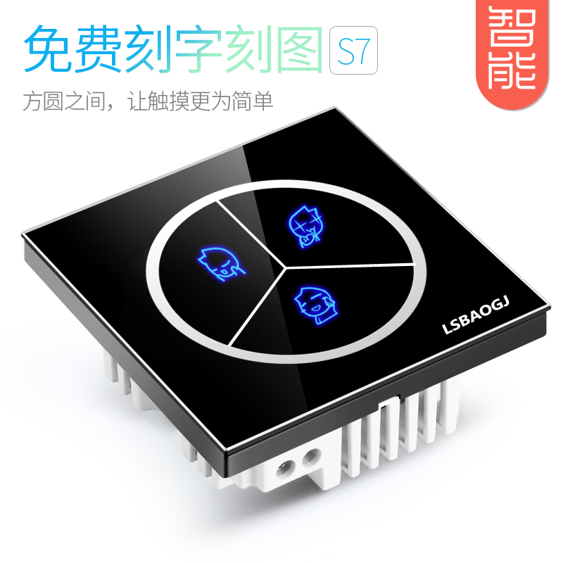 Smart home glass touch switch three-open single-control 86 type free graphic custom light switch socket panel