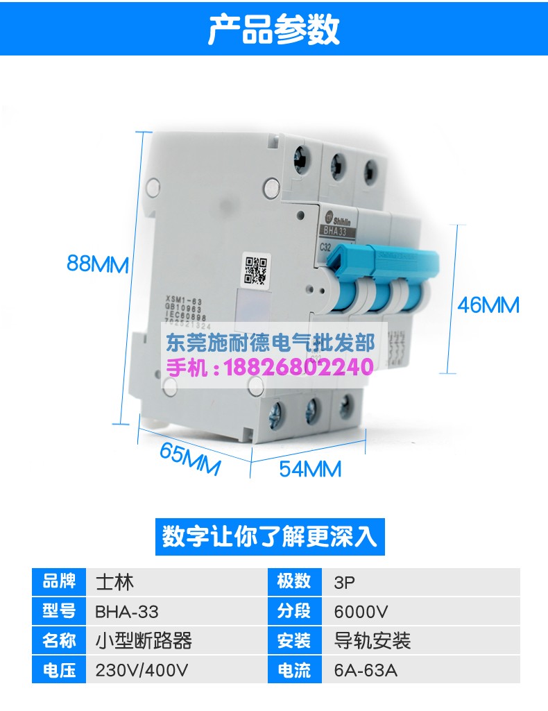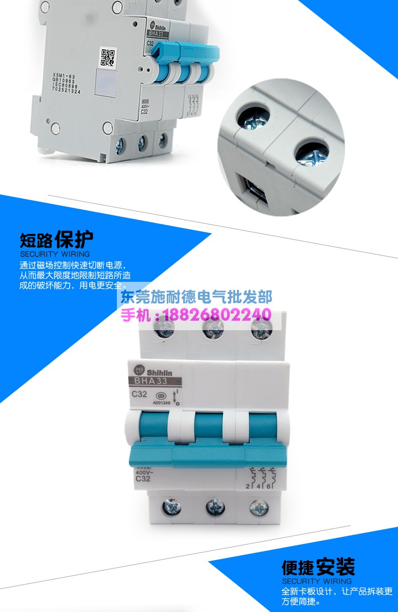 New original Shilin C-type small circuit breaker 3P air switch BHA-33 stable performance