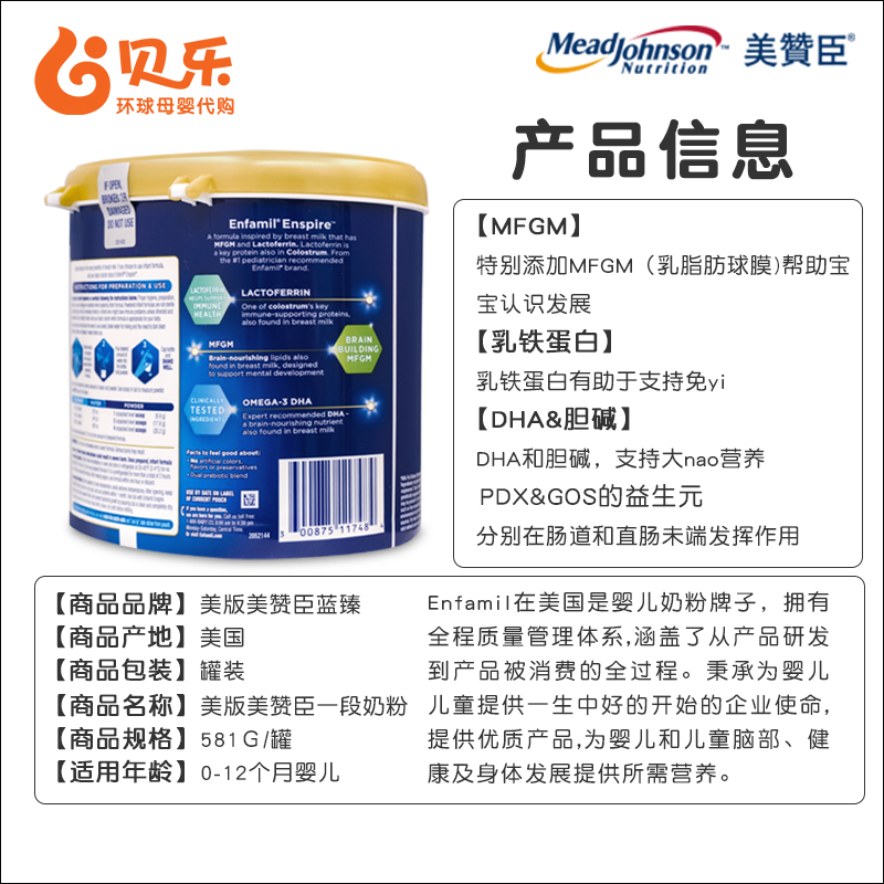 US imported US version of the US Zanchen Enspire for a section of Blue Zhen milk ferritin infant milk powder 581g-Taobao