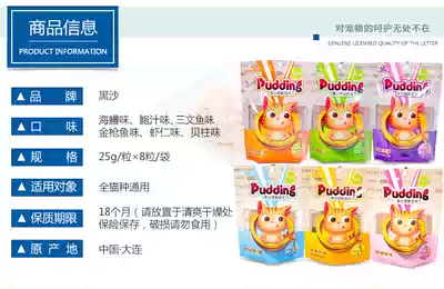 Black sand cat pudding 25g * 8 pets into kittens snacks cat jelly cat wet food soft canned wonderful fresh bag