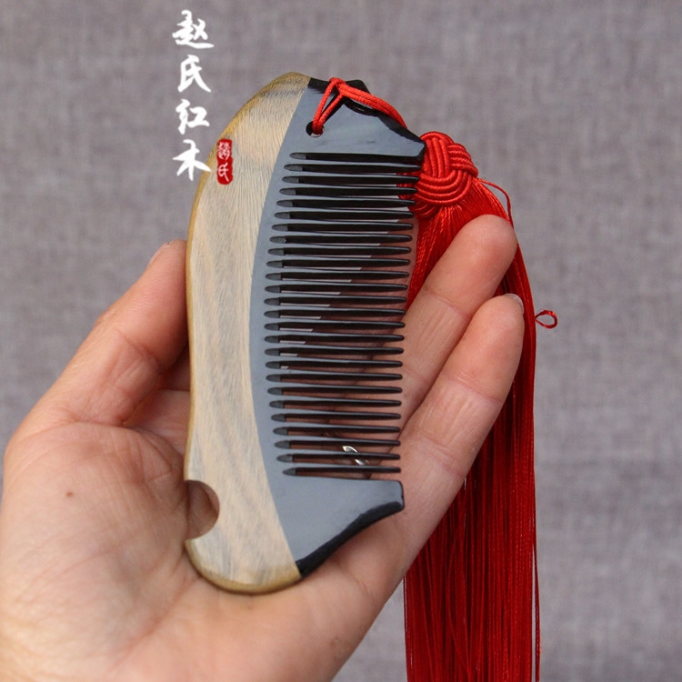 High-grade red wood comb solid wood black sandalwood corner comb green sandalwood anti-static massage bull corner comb